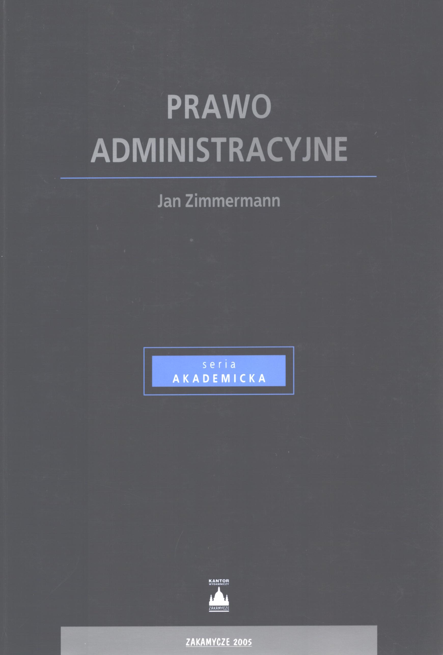 Prawo administracyjne / Jan Zimmermann. - Stan prawny na 31 grudnia 2004 r. - Kraków : "Zakamycze", 2005. - 504, [2] s. ; 23 cm.