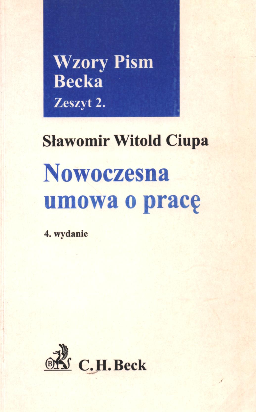 Nowoczesna umowa o pracę / Sławomir Witold Ciupa. - 4 wyd. - Warszawa : C. H. Beck, 2001. - XIII, 364 s. ; 23 cm.