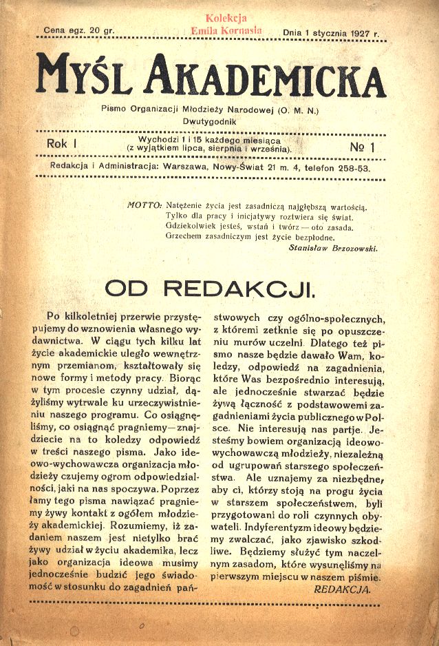 Od 1914, nr 1 [Redaktor L. Marjan Wolff].