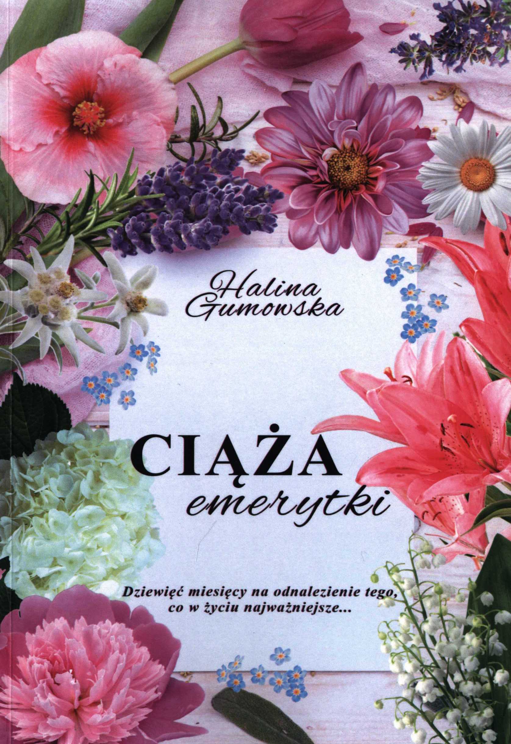 Halina Gumowska opisuje ze swadą dziewięć miesięcy z życia emerytki. To jak ciąża! podsuwa ktoś myśl. I faktycznie, po dziewięciu miesiącach główna bohaterka czuje, że narodziła się na nowo. Jest człowiekiem z zupełnie inną perspektywą. Co przyniósł jej ten czas? Wolność, którą oswobodziła ją z rutynowych działań i myśli. Z codziennej stagnacji. Przyniosła spokój i poczucie wartości upływającego czasu, dzięki czemu można przystanąć i posłuchać, jak brzmi cisza. Poczuć czas, który zamiast gonić, zatrzymał się i dostarcza energii. A mijając, odmładza duchowo! Zapominamy, że życie nie składa się z wielkich wydarzeń, lecz z drobiazgów. I o takich właśnie wydarzeniach jest ta niezwykle budująca książka. Należy dodać, że główna bohaterka nie dokonałaby takiej rewolucji w życiu, gdyby nie towarzyszące jej kobiety, których imiona w opowieści autorka zmieniła na nazwy kwiatów. Malwa, Piwonia, Maciejka, Stokrotka, Niezapominajka, Kalina, Lilia, Szarotka, Konwalia, Dalia i Lawenda każda inna, niezastąpiona i jedyna w swoim rodzaju. Okładka to swoisty ukłon w ich stronę, z której bije moc kobiecej wspólnoty, zamieniającej zwykłe chwile na niezwykłe wspomnienia.