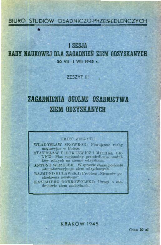 Osadnictwo - Polska - od 1944 r. - materiały konferencyjne
