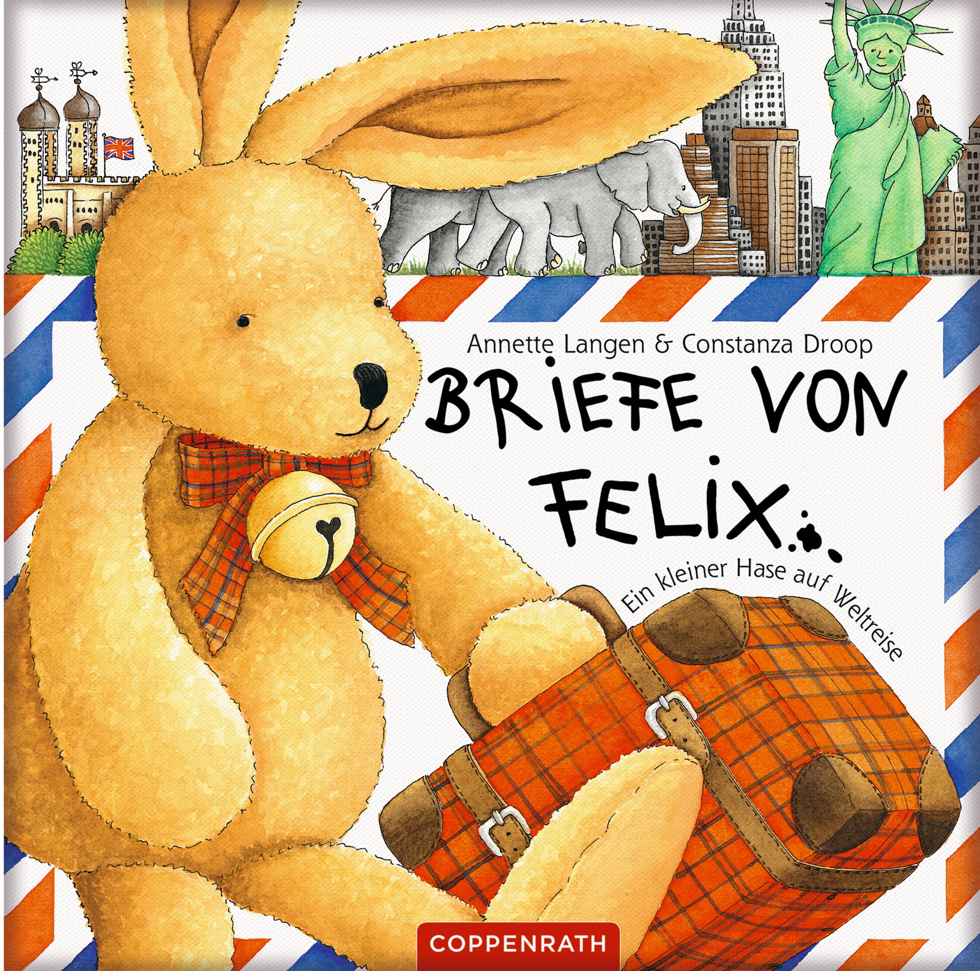 Gegen Ende der großen Ferien passiert etwas Furchtbares: Sophies Kuschelhase Felix verschwindet auf dem Flughafen. Das ist sehr, sehr schlimm, denn Sophie und Felix sind unzertrennlich. Als die Schule wieder beginnt, kommt plötzlich Post aus London für Sophie an – ein Brief von Felix! Aber das ist nur der allererste Brief, den ihr Kuschelhase von seiner Weltreise sendet. Weitere Briefe folgen aus Paris, Rom, Kairo, von einer Safari in Kenia und aus New York. Spannend und informativ zugleich sind seine humorvollen Schilderungen über Land und Leute, die in sechs echten, frankierten Briefumschlägen stecken. Täuschend echte Briefe und ein Köfferchen mit Reiseerinnerungen lassen diese Weltreise beinahe Wirklichkeit werden.