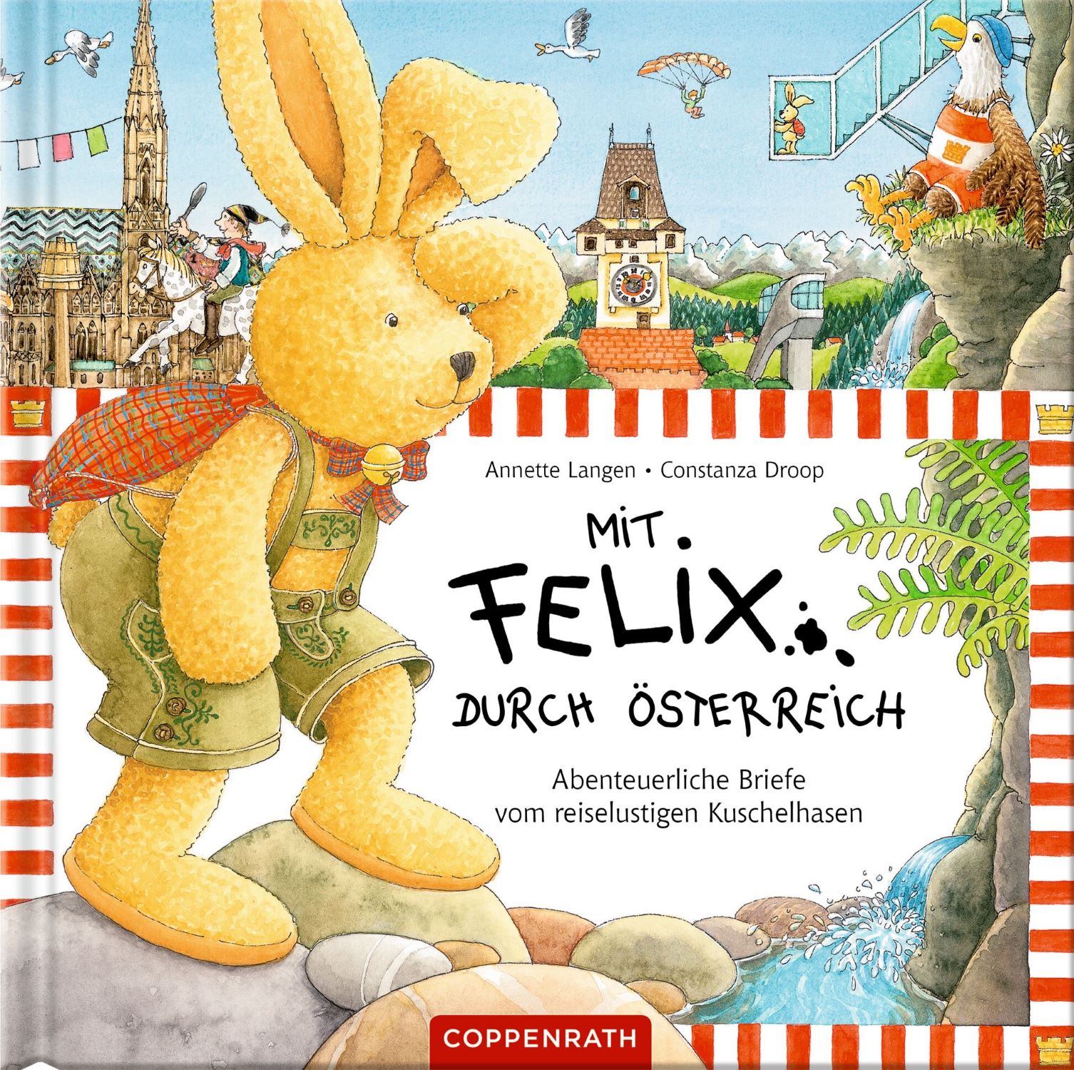 Sophie und ihre Familie machen Ferien in Österreich. Natürlich ist auch Felix mit dabei. Aber beim Besuch der Seebühne in Bregenz verschwindet der kleine Kuschelhase plötzlich und reist von nun an ohne seine Sophie durch Österreich. Unterwegs trifft er Adele, ein Adlermädchen, das sich bestens im Land auskennt. Zwischen Bodensee und Neusiedler See, Großglockner und Dachstein, Sonnenwendfeuern und Kufenstechen erlebt Felix die schönsten Abenteuer, von denen er seiner Sophie in 6 echten Briefen mit überraschenden Extras erzählt.