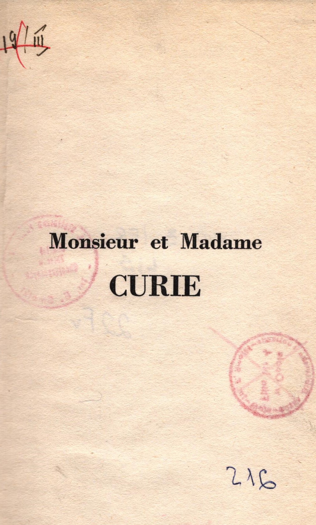 Monsieur et Madame Curie / Yves Igot. - Paris : Didier, 1959. - 70 s. ; 18 cm.