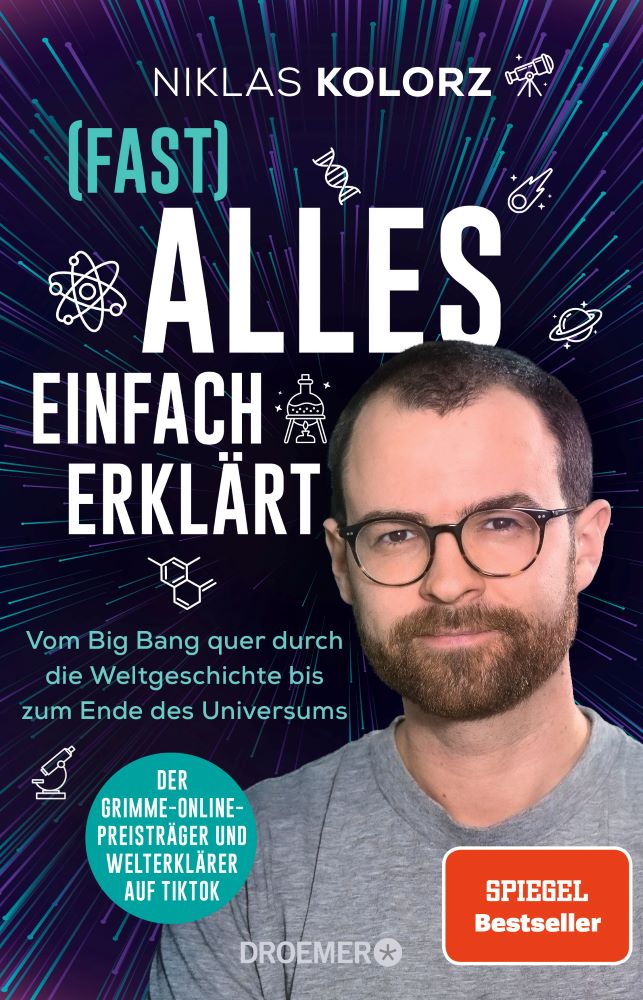 Wie funktioniert das Universum? Und wer hat’s erfunden? Ein wilder Trip durch die großen Entdeckungen der Astrophysik, Chemie und Biologie von Wissenschaftsjournalist und Science-Star Niklas Kolorz. Von subatomaren Partikeln bis zur Supernova: einfach alles erklärt Pythagoras, Galileo Galilei, Newton, Einstein und Hubble: wie sie unser Weltbild revolutioniert haben Warum das Universum ein Rotlichtmilieu ist und was das mit Taubendreck zu tun hat Weshalb auch Unwissenheit nicht vor Nobelpreisen schützt Das Wissen über das, was die Welt im Innersten zusammenhält, ist nicht nur das Ergebnis herausragender Forschung brillanter Geister, sondern auch eine Konsequenz wahnwitziger Zufälle und absurder Ideen. Genau dieser höchst unterhaltsamen und verrückten Seite der Wissenschaft und ihrer Geschichten widmet sich der junge Science-Star und Wissenschaftsjournalist Niklas Kolorz. Er begleitet Pythagoras, Marie Curie und Albert Einstein, während sie quasi zufällig ihre bahnbrechenden Entdeckungen machen, erzählt über die verrückten Eigenheiten Isaac Newtons auf dem Weg zur Erkenntnis oder beobachtet den Einschlag jenes Asteroiden, der das Ende der Dinosaurier einläutete. Der wilde Ritt durch die bizarre Geschichte epochaler Entdeckungen führt uns direkt in die Gegenwart und beantwortet nebenbei die ganz großen Fragen: Woher kommen wir? Woraus besteht das Universum? Und was geschieht in der Zukunft? Niklas Kolorz ist Wissenschaftsjournalist und erklärt auf TikTok einem Millionenpublikum faszinierende Phänomene aus Astronomie, Physik und Chemie. Aber noch mehr: Er beleuchtet auch die Menschen und ihre Geschichten, die hinter den großen Erkenntnissen der Naturwissenschaft stecken. Mit Leidenschaft kommt Niklas Kolorz so den skurrilsten Geschichten und wundersamsten Charakteren der Wissenschafts-Geschichte auf die Spur. Für seine Arbeit wurde er nicht nur mit dem Grimme-Online-Award ausgezeichnet, sondern zeigt zugleich, wie wichtig Wissenschaft im Alltag ist.