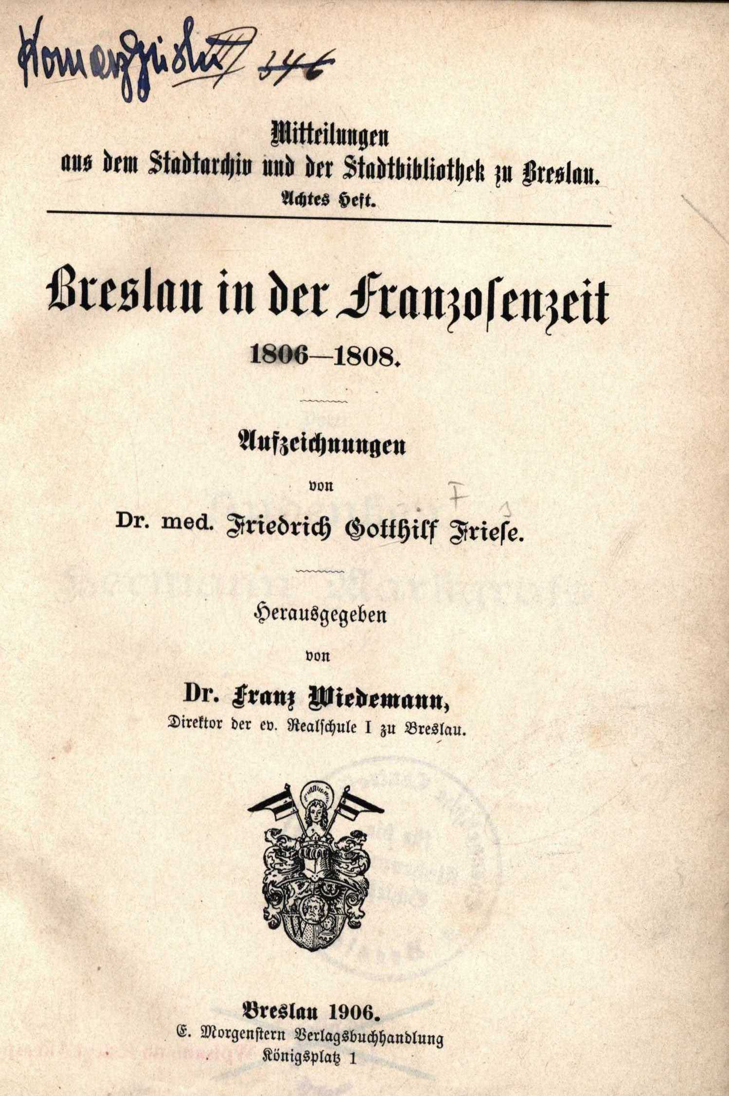 Od 1870 wydawca: In Commission von E. Morgenstern.