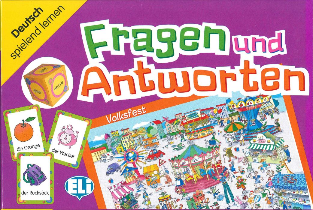 Fragen und Antworten : Volksfest. - Recanati : ELI srl, 2007. - 1 pudełko : 1 plansza do gry, 66 kart, 1 kostka ; 21.5 cm x 14.5 cm + instrukcja.