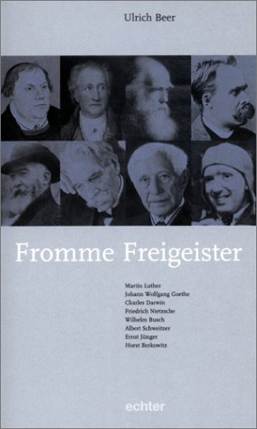 Was ist ein frommer Freigeist? Sollten Martin Luther, Johann Wolfgang Goethe, Charles Darwin, Friedrich Nietzsche, Wilhelm Busch, Albert Schweizer, Ernst Jünger und Horst Berkowitz tatsächlich Fromme Freigeister sein? Ulrich Beer jedenfalls nennt sie so. Frisch -- fromm -- fröhlich -- freigeistig?! Bei einem Mann wie dem Reformator Luther liegt es schon auf der Hand, ihn als fromm zu bezeichnen -- aber als Freigeist? Und wie steht es mit dem Schöngeist Goethe? War er fromm? Ulrich Beer gelingt es in der Tat, die frommen, die religiösen Spuren im Leben dieser Männer aufzuspüren und behutsam nachzuzeichnen: Sie waren so frei, auch fromm zu sein. Es klingt paradox, von der Frömmigkeit Nietzsches oder Darwins zu sprechen. Beer jedoch zeigt, dass der Zweifel fromm sein kann. Der Psychologe Ulrich Beer -- bekannt als Gutachter in der ZDF-Serie Ehen vor Gericht -- stellt unter der Perspektive Frömmigkeit und Freiheit das Leben acht großer Männer vor, die Weltgeschichte geschrieben haben: ungewöhnliche Männer in ungewohnter Perspektive. Als Menschen ihrer Zeit wagten diese kühnen Gelehrten es, um die Ecke zu denken, wagten es, in Krisen neue Horizonte zu erkennen, wagten es, gegen gesellschaftliche Widerstände fromme Freigeister zu sein. Zugleich waren sie von tiefer Religiosität und Gottvertrauen getragen -- jeder auf seine ganz besondere Art. --Bettina Wittke