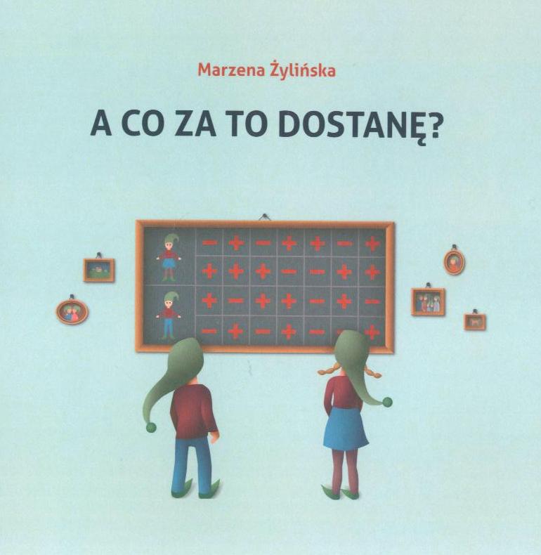 A co za to dostanę?" to trzecia część przygód skrzata Budełki. To książka adresowana z jednej strony do dzieci, które już umieją czytać, a z drugiej do dorosłych, którzy wierzą, że dzieci można wychować z pomocą kar i nagród. Do tekstu dołączone są zadania. Można z nimi pracować w szkole, jak również w domu. Nadają się również dla uczniów w ED. „Jak ładnie narysujesz szlaczek, dostaniesz złotą gwiazdkę”. „Jak zrobisz ćwiczenie, dostaniesz słoneczko”. „Jak się nauczysz wiersza na pamięć, dostaniesz piątkę”. Zawsze coś za coś. Rysuj, pisz, czytaj, licz, a dostaniesz za to nagrodę. Trzecia część „Piernikowej Wyspy” jest właśnie o tym, co złego jest w złotych gwiazdkach i tablicach motywacyjnych, co tracą dzieci, gdy nauczymy je, że warto robić tylko to, za co dostaje się nagrody, że za każdy trud należy się gratyfikacja. Nagrody są jak cukier. Życie bez niego jest dużo zdrowsze, ale gdy się raz pozna smak słodyczy, wydaje się, że nie można bez nich żyć. Bo cukier uzależnia. Dokładnie tak samo jest z ocenami i wszystkimi innymi nagrodami. Kto nauczył się pisać, czytać czy liczyć dla kwiatków, złotych gwiazdek, punktów czy stopni, dla tego nagrody stają się celem. Do rąk Czytelników trafia trzecia część „Piernikowej Wyspy”. Po książkach Życie to nie wyścigi i Między kijem a marchewką przyszła kolej na A co za to dostanę?. To kolejna odsłona przygód Budełki i Raptuni. Moje książki adresuję do dzieci, ale pisząc je, myślę również o dorosłych – o rodzicach i nauczycielach. Bo to my dorośli uzależniamy dzieci od ocen i innych nagród, to my wieszamy na ścianach prawdziwe lub symboliczne tablice z punktami, to my uczymy dzieci rywalizacji i każemy im gonić za kolorowymi, bezwartościowymi świecidełkami. Mam ogromną nadzieję, że znalazłam odpowiednie słowa, by przekonać dorosłych, że uzależnianie dzieci od nagród jest błędem. „Nie jestem taki głupi, żeby sprzątać, jeśli nie dostanę za to ani jednego punktu” – mówi Budzisław. Taka jest logika systemu wychowawczego, w którym został wychowany. Ale dzieci można wychować zupełnie inaczej. To nasze decyzje – rodziców i nauczycieli. Autorką części zadań jest Joanna Hofman. Joannie oraz Kalinie Stefaniak zawdzięczam wiele cennych wskazówek, których źródłem jest praca z dziećmi. W tworzeniu zadań związanych ze skuteczną komunikacją pomagała mi Ewa Tyralik-Kulpa. Jestem Wam niezmiernie wdzięczna, że mnie wspieracie i tak szczodrze dzielicie się Waszymi doświadczeniami.