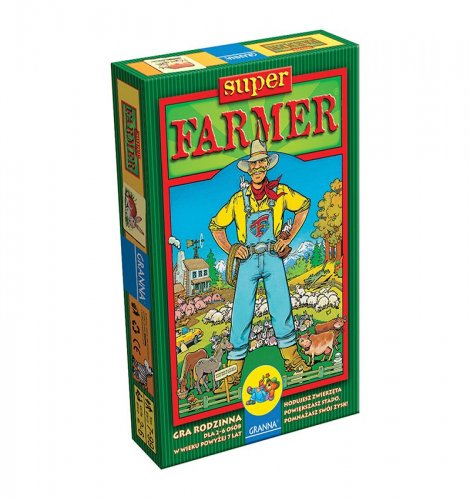 Jesteś hodowcą zwierząt i chcesz zostać superfarmerem. Twoje zwierzęta rozmnażają się, a to przynosi ci zysk. Możesz zamieniać wyhodowane zwierzęta na inne, jeśli uznasz, że to się opłaca. Aby zwyciężyć, musisz jako pierwszy uzyskać stado złożone co najmniej z konia, krowy, świni, owcy i królika. Jednak wszystkie Twoje plany mogą pozostać tylko w sferze marzeń, jeśli nie zachowasz należytej ostrożności! W okolicy grasują bowiem wilk i lis, których łatwym łupem mogą stać się Twoje zwierzęta. "Superfarmer" to gra, która powstała w Warszawie w 1943 roku. Nosiła wtedy tytuł "Hodowla zwierzątek". Jej autorem jest wybitny polski matematyk, profesor Karol Borsuk. Gdy Niemcy zamknęli Uniwersytet Warszawski, profesor został bez pracy. W czasie wojny ludzie dokonywali cudów pomysłowości w poszukiwaniu źródeł utrzymania. Pomysłem profesora na ratowanie budżetu rodzinnego była sprzedaż gry. Zestawy do "Hodowli zwierzątek" przygotowywała metodami domowymi żona profesora, pani Zofia Borsukowa. Autorką rysunków zwierzątek była pani Janina Śliwicka. Gra zyskała wielką popularność - najpierw wśród przyjaciół rodziny, a potem w coraz szerszych kręgach osób znajomych i nieznajomych. W domu państwa Borsuków rozdzwonił się telefon, a w słuchawce, co i rusz można było usłyszeć pytanie: Czy to hodowla zwierzątek? Po potwierdzeniu następowało zamówienie i gry trafiały do sklepu. Gra bawiła nie tylko dzieci, wciągała także dorosłych, pomagając im przetrwać smutne okupacyjne wieczory. Oryginalne egzemplarze gry spłonęły wraz z miastem w czasie powstania warszawskiego, w sierpniu 1944 roku. Szczęśliwie jeden z egzemplarzy zachował się poza Warszawą i wiele lat po wojnie wrócił do rodziny Borsuków. W czerwcu 1997 roku z inicjatywy pani Zofii Borsukowej, z okazji jej 90 urodzin oraz w 15 rocznicę śmierci profesora Karola Borsuka "Hodowla zwierzątek" została wydana przez Grannę pod tytułem "Superfarmer", by bawić kolejne pokolenia dzieci i rodziców.