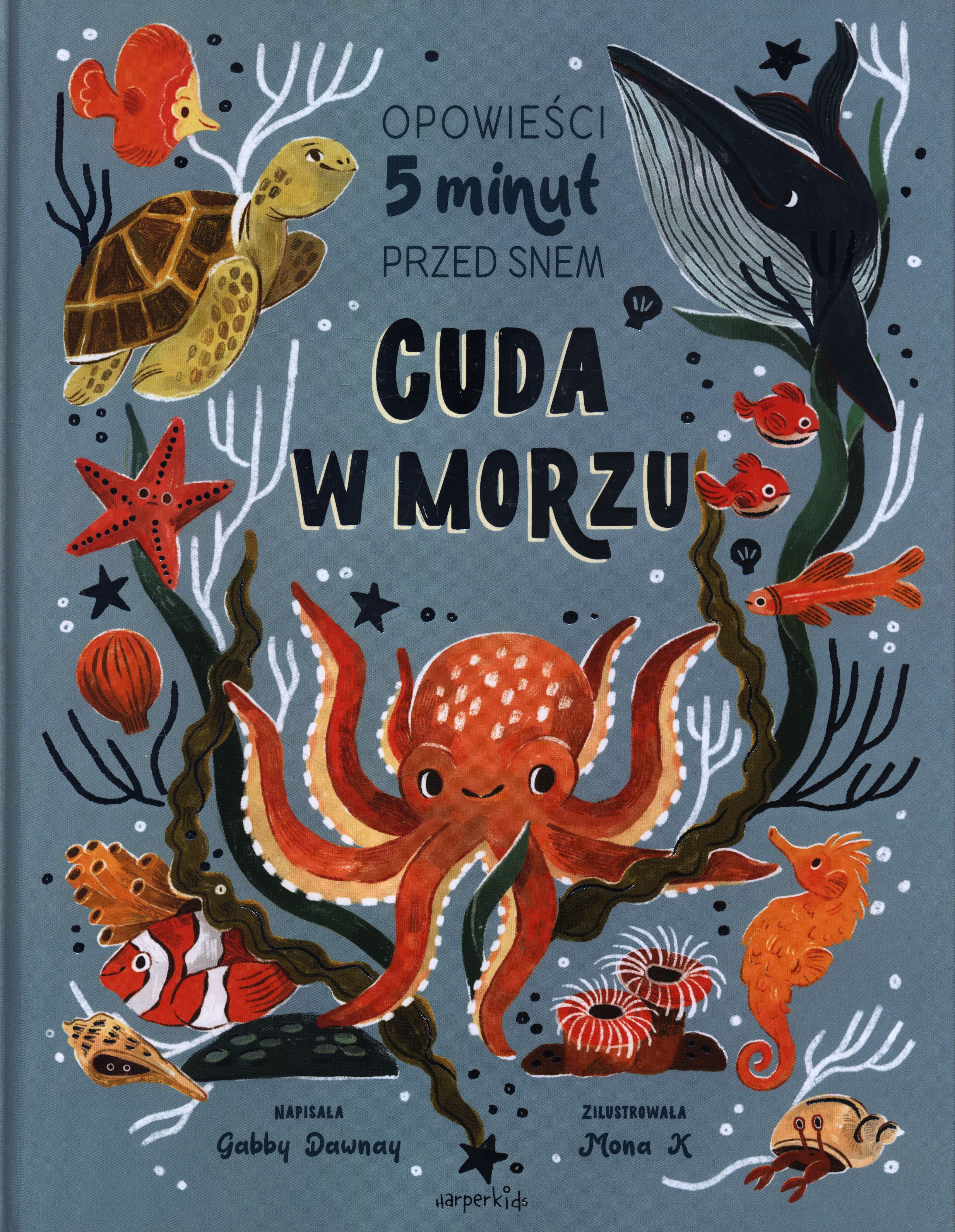 W morzach turkusowych między głębinami kryje się świat cudów. Zaraz go poznamy! Edukacja przyrodnicza ma olbrzymie znaczenie dla rozwoju dzieci, ale jak właściwie przekazywać wiedzę maluchom? Wiele bajek, których bohaterami są zwierzęta, powiela szkodliwe stereotypy, z kolei książki edukacyjne są dla młodszych czytelników jeszcze za trudne (i nudne). Złoty środek znalazła brytyjska pisarka i poetka Gabby Dawnay, tworząc urocze, dowcipne, wierszowane opowiastki edukacyjne. Dzięki melodii i rymom łatwo wpadają w ucho, czyta się je tak dobrze jak bajki, a przemycają mnóstwo rzetelnej wiedzy! W ramach serii Opowieści 5 minut przed snem ukazały się już Cuda w lesie i Cuda w ciele, które wyróżnia duża dawka uśmiechu i delikatności. Teraz dołączają do nich Cuda w morzu.