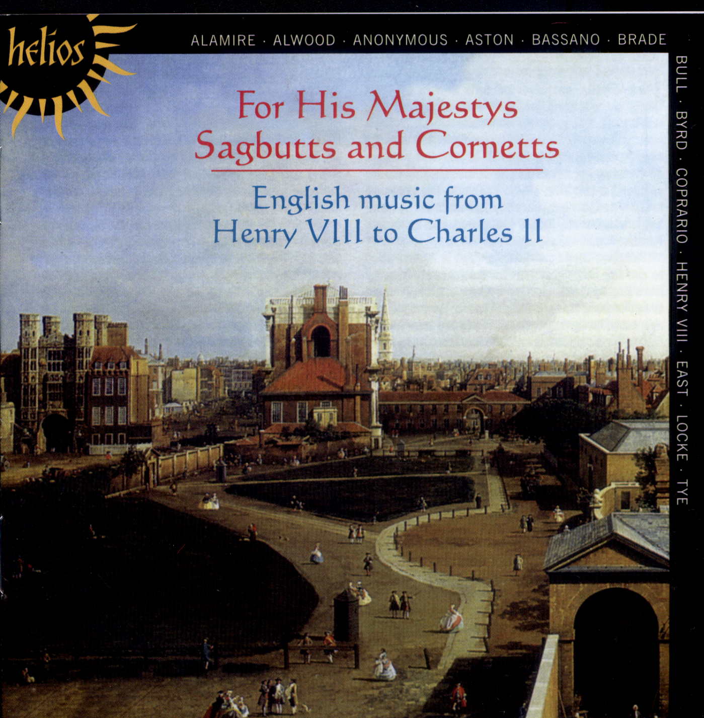 Zawiera: Bassedance : En vray amoure / Henry VIII (2:02). The Trowmpettus / Anonymous (0:34). Bassedance : Taunder Nacken / Henry VIII (1:50). The Trowmpettus : Reprise / Anonymous (0:31). Bassedance : T'Andernacken / Pierre Alamire (1:59). Hugh Ashton's Maske / Anonymous (3:55). A Hornepype / Hugh Aston (3:31). In Nomine XI : Farwell My Good One / Christopher Tye (2:38). In Nomine II / Richard Alwood (1:15). In Nomine IV : Howld Fast (1:18) ; In Nomine XIX : Crye (1:55) / Christopher Tye. In Nomine / Anonymous (1:21). In Nomine V / William Byrd (2:34). The Queen's Masque / Anonymous (1:02). The Bull Masque / John Bull (1:14). Gray's Inn The 1st / John Coprario (1:26). Cornish Dance / William Brade (1:02). Irish dance / Anonymous (0:46). Scottish Dance / William Brade (2:45). Fantasia / John Coprario (2:28). Fantasia / John Bull (4:22). Pavan And Galliard / Augustine Bassano (4:21). Fantasia / Jerome Bassano (3:01). When David Heard That Absalon Was Slain / Michael East (4:08). Voluntary In F (1:21) ; For His Majestys Sagbutts And Cornetts : Pavan-Almand (2:30) ; For His Majestys Sagbutts And Cornetts : Suite I In D Minor (5:12) ; Voluntary In A Minor (1:03) ; For His Majestys Sagbutts And Cornetts : Suite II In F (5:06) ; Voluntary In D Minor (1:05) ; For His Majestys Sagbutts And Cornetts : Pavan-Almand : Reprise (2:32) / Matthew Locke.