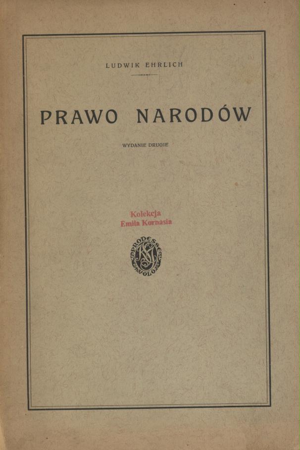 Prawo narodów / Ludwik Ehrlich. - Wyd. 2. - Lwów : nakład i własność K. S. Jakubowskiego, 1932 (Lwów : Drukarnia K. S. Jakubowskiego). - XXVII, [1], 651 s. ; 23 cm.