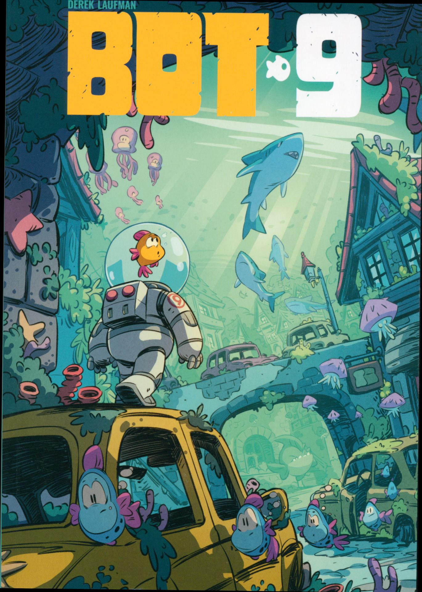 BOT-9 / Derek Laufman ; tłumaczenie Marek Starosta. - Wydanie pierwsze. - Kartuzy : Kboom, © 2023. - [64] strony : ilustracje kolorowe ; 26 cm.