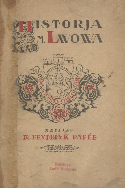 Historja miasta Lwowa : w zarysie : z 30 ilustracjami / dr Fryderyk Papée. - Wyd. 2 popr. i uzup. - Lwów ; Warszawa : Książnica Polska. Tow. Nauczycieli Szkół Średn. i Wyższych. Akc. Sp. Kartogr. i Wydawnicza, 1924 (Lwów : odbito we własnych zakładach graficznych). - 286 s. : il. ; 20 cm.