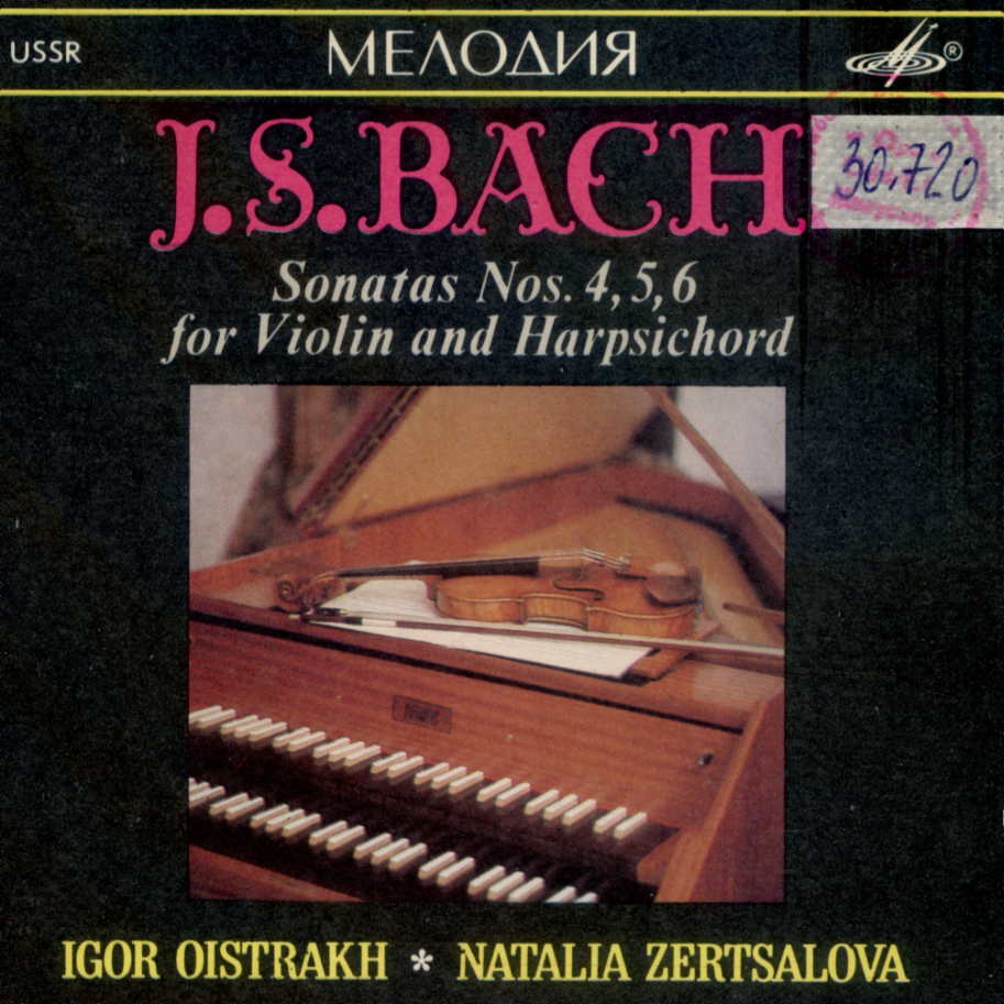 Sonatas Nos.4,5,6 For Violin And Harpsichord / Johann Sebastian Bach ; skrz. Igor Ojstrach ; klawesyn Natalia Zercałowa. - Moskwa : Melodija, 1990. - 1 płyta audio (CD) (51 min 52 s) : zapis cyfrowy, stereo ; 12 cm.