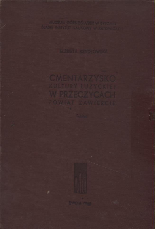 Cmentarzysko kultury łużyckiej w Przeczycach, pow. Zawiercie. [3]. Omówienie materiałów / Elżbieta Szydłowska ; Śląski Instytut Naukowy w Katowicach. - Wydanie I. - Bytom : Muzeum Górnośląskie, 1972. - 292 strony, [3] karty tablic : fotografie, ilustracje, mapy, plany, tabele ; 24 cm + Mapy i zestawienia : 38 kart tablic