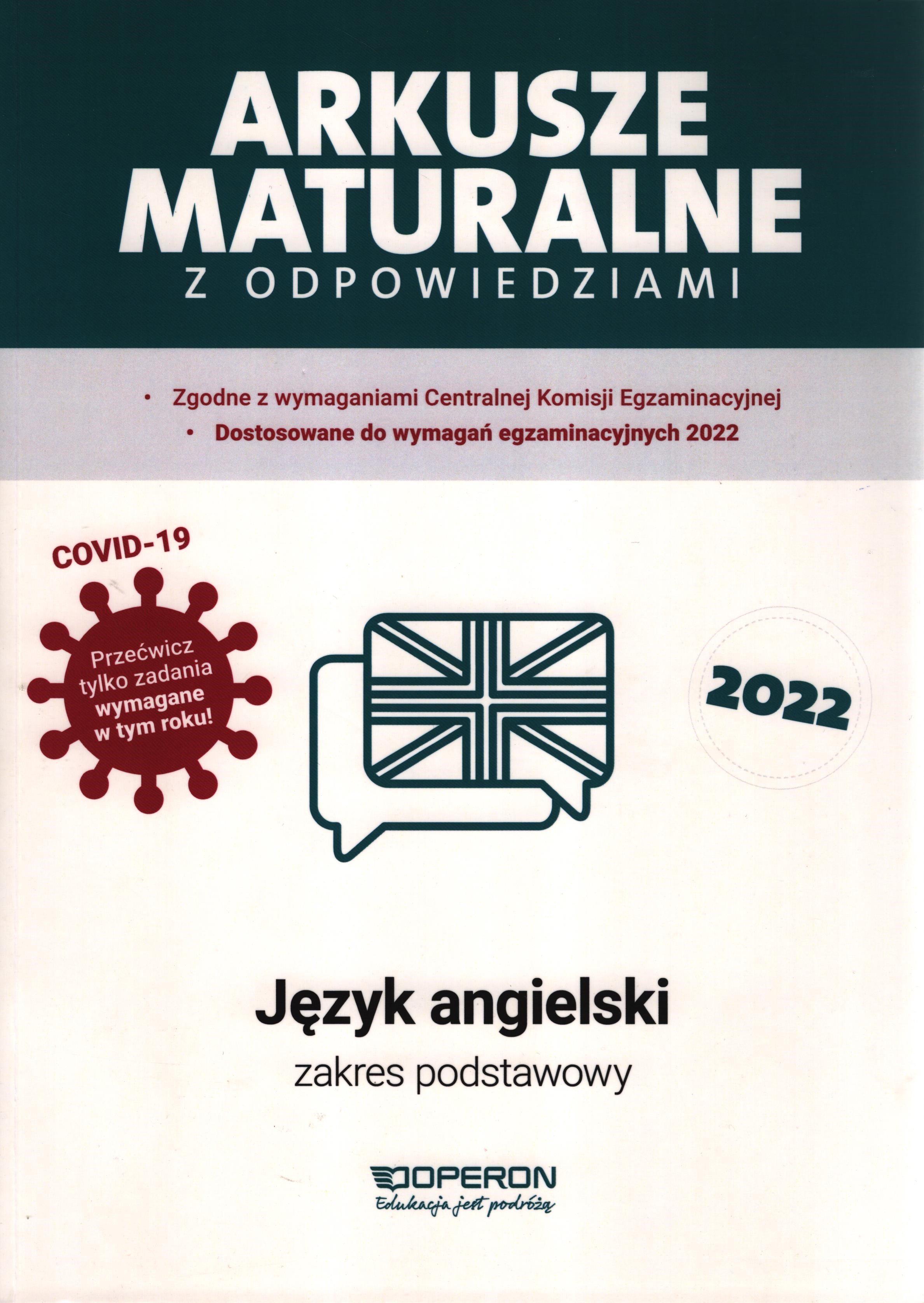 Matura : język angielski zakres podstawowy : arkusze / Anna Tracz. - Gdynia : Operon, 2022. - 129 stron : fotografia, ilustracje ; 29 cm.
