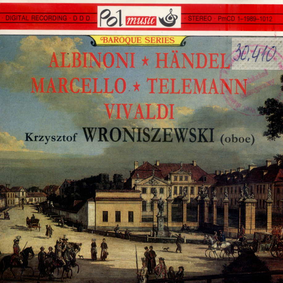 Barokowe Koncerty Obojowe / obój Krzysztof Wroniszewski ; ork. Warsaw Baroque Soloists "Concerto Avenna". - Warszawa : POLmusic, 1989. - 1 płyta audio (CD) (52 min 18 s) : zapis cyfrowy, stereo ; 12 cm
