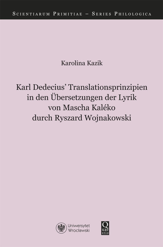 Celem powyższej pracy jest zdefi niowanie charakterystycznych cech indywidualnej teorii translacji Karla Dedeciusa oraz określenie jej wartości wśród klasycznych teorii dotyczących przekładu poezji. Wiele uwagi poświęcono roli tłumacza w procesie translacji. W tym celu wyekscerpowano wiersze niemieckiej poetki Maschy Kaléko z tomu Moje epitafium, a następnie porównano je z ich tłumaczeniem na język polski autorstwa Ryszarda Wojnakowskiego po to, aby zbadać cechy języka oryginału oraz sprawdzić, czy funkcja tekstu wyjściowego została zachowana w tekście docelowym (teoria skoposu). Kompetencje językowe tłumacza czy jego wiedza na temat fenomenów kultury stanową interdyscyplinarne zagadnienie. Transformacje przekładowe Romana Lewickiego posłużyły jako narzędzie pozwalające przeanalizować podejmowane przez tłumacza decyzje w trakcie tłumaczenia. Każdy akt tłumaczenia można uznać za komunikację. Ponadto w pracy zaakcentowano rolę kompetencji, jakie powinien posiadać doświadczony tłumacz. Następnie wskazano na istotną kwestię dotyczącą wyboru odpowiedniej strategii tłumaczeniowej, która determinuje ostateczny wynik aktu tłumaczenia. W związku z tym należało uwzględnić liczne związki pomiędzy kulturowymi i językowymi aspektami komunikacji interkulturowej. W wyniku przeprowadzonej analizy niemieckich wierszy oraz ich tłumaczenia na język polski można stwierdzić, że tłumaczenie jest procesem heterogenicznym, przy czym jego przebieg zależy od indywidualnych decyzji tłumacza i wypracowanej przez niego strategii pozwalającej stworzyć adekwatny tekst w języku docelowym.
