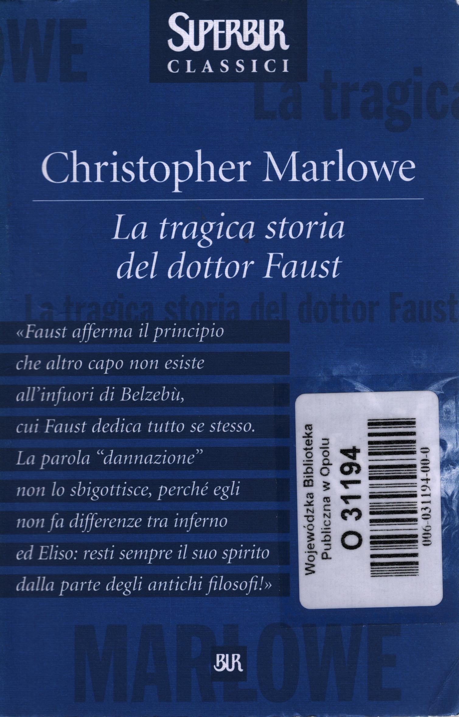Faust è il maggior teologo della sua città, è noto in tutto il mondo, è insuperabile nell'arte dialettica. Ma questo non gli basta: vuole sempre di più, desidera sempre di più, e proprio per questo stipula un patto con Mefistofele. La sua anima in cambio della possibilità di fare quello che vuole e di una potenza senza pari al mondo. Ma alla fine morrà disperato perché su un'unica cosa non ha il potere: rinviare l'ora della propria morte. La versione elisabettiana del celebre mito di Faust.
