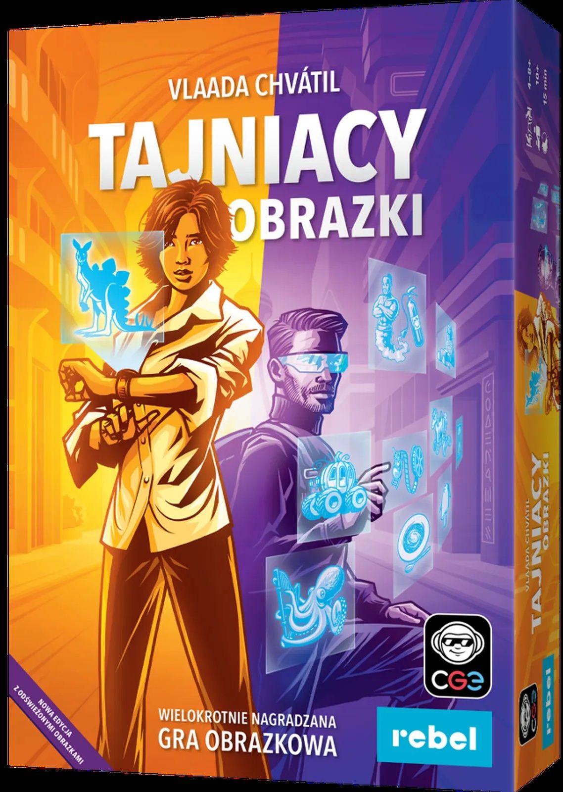 Tajniacy [Gra] : obrazki : wielokrotnie nagradzana gra obrazkowa / [autor] Vlaada Chvátil ; [główny grafik: Tomáš Kučerovský]. - Nowa edycja z odświeżonymi obrazkami. - Gdańsk : Rebel, copyright 2018-2025. - 1 pudełko ; 24x16x6 cm + instrukcja.