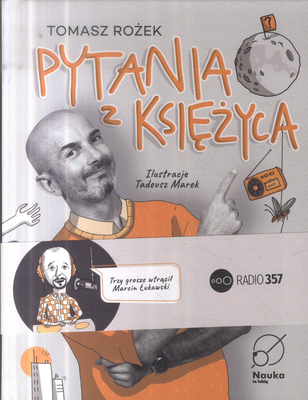 Pytania z Księżyca to książka, która powstała na kanwie kultowej audycji Tomasza Rożka w Radio 357 o tym samym tytule (wcześniej Pytania z Kosmosu w radiowej Trójce). Jest to zbiór 80 pytań, które przez lata zadawali słuchacze radia i odpowiedzi doktora Rożka, które autor poszerzył w książce. Całość została podzielona na cztery kategorie tematyczne: kosmos, przyroda, człowiek i cywilizacja. Ta książka udowadnia, że nie ma głupich pytań i pokazuje, że świat jest naprawdę fascynujący. Czy zastanawialiście się kiedyś jak to jest, że mucha ląduje na suficie i nie spada? Albo czy zwierzęta, tak jak ludzie, dzielą się na prawo i leworęczne? Pewnie nie przyszło Wam też do głowy, żeby kiedykolwiek zapytać o to, czy pająki puszczają bąki? Nawet jeśli nie, to słuchacze audycji „Pytania z Księżyca” zrobili to za Was. To tylko kilka przykładów intrygujących, nietypowych pytań, które znajdziecie w tej książce. Skoro pytania, to i odpowiedzi, a tych autor udzielił z wrodzonym sobie humorem, lekkością, w prosty, popularnonaukowy – czyli zrozumiały dla wszystkich – sposób. Tomasz Rożek, który słynie z lekkiego pióra, trafnych porównań, udowadnia w tej książce, że można w sposób popularnonaukowy wytłumaczyć absolutnie każde zjawisko, które zachodzi w przyrodzie. I robi to bezbłędnie udzielając odpowiedzi na szereg, często szalonych pytań postawionych przez Was.