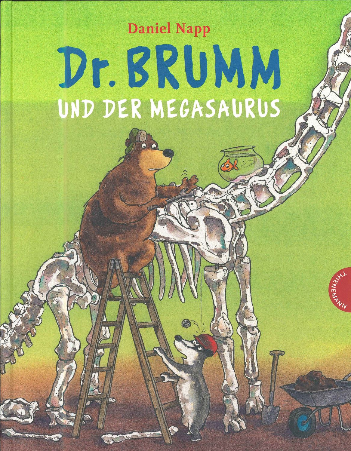 Dr. Brumm im Dinofieber! Bilderbuch für Kinder ab 4 Jahren. Dr. Brumm macht das, was er jeden Freitag macht: Gartenarbeit. Als er sein Gemüsebeet umgräbt, stößt er auf etwas sehr Ungewöhnliches ... einen waschechten Dinoknochen! Mit Hilfe von Dachs und Pottwal gräbt Dr. Brumm auch noch den Rest des Dinos aus und in Nullkommanix steht ein gigantisches Megasaurus-Skelett in seinem Garten. Nur der Kopf des Urtiers ist nicht zu finden. Die Spur führt zu Bauer Hackenpieps Grundstück. Ausgerechnet, denn hier ist Graben absolut unmöglich! Aber Dr. Brumm, Dachs und Pottwal finden natürlich einen Weg, Hackenpiep zu überlisten ...