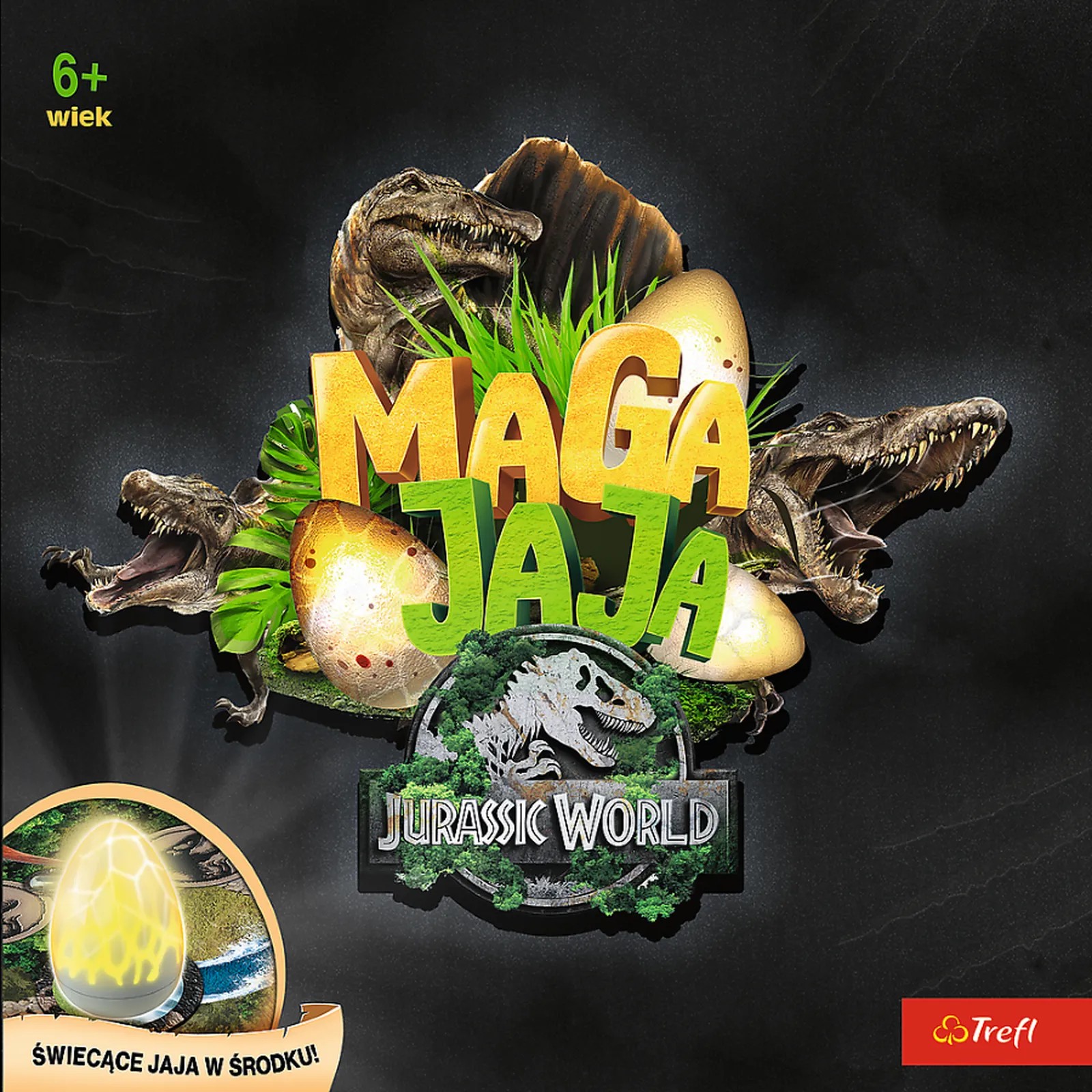 Gra "Magajaja Jurassic World" to fascynująca przygoda w świecie dinozaurów, w której gracze pomagają magicznym jajom odnaleźć drogę do swoich gniazd! W trakcie rozgrywki zagrywacie karty i przesuwacie świecące jaja po planszy, starając się doprowadzić je do odpowiednich krain. Kiedy jajo dotrze na właściwe miejsce, ukaże swoje prawdziwe, kolorowe oblicze! Zapamiętajcie położenie jajek i doprowadźcie je do celu, aby zdobyć kartę Specjalnego Jaja. Gracz, który jako pierwszy zgromadzi pięć takich kart, zostaje zwycięzcą! Gra rozwija pamięć, spostrzegawczość i logiczne myślenie, a świecące jaja dodają jej niezwykłego klimatu.