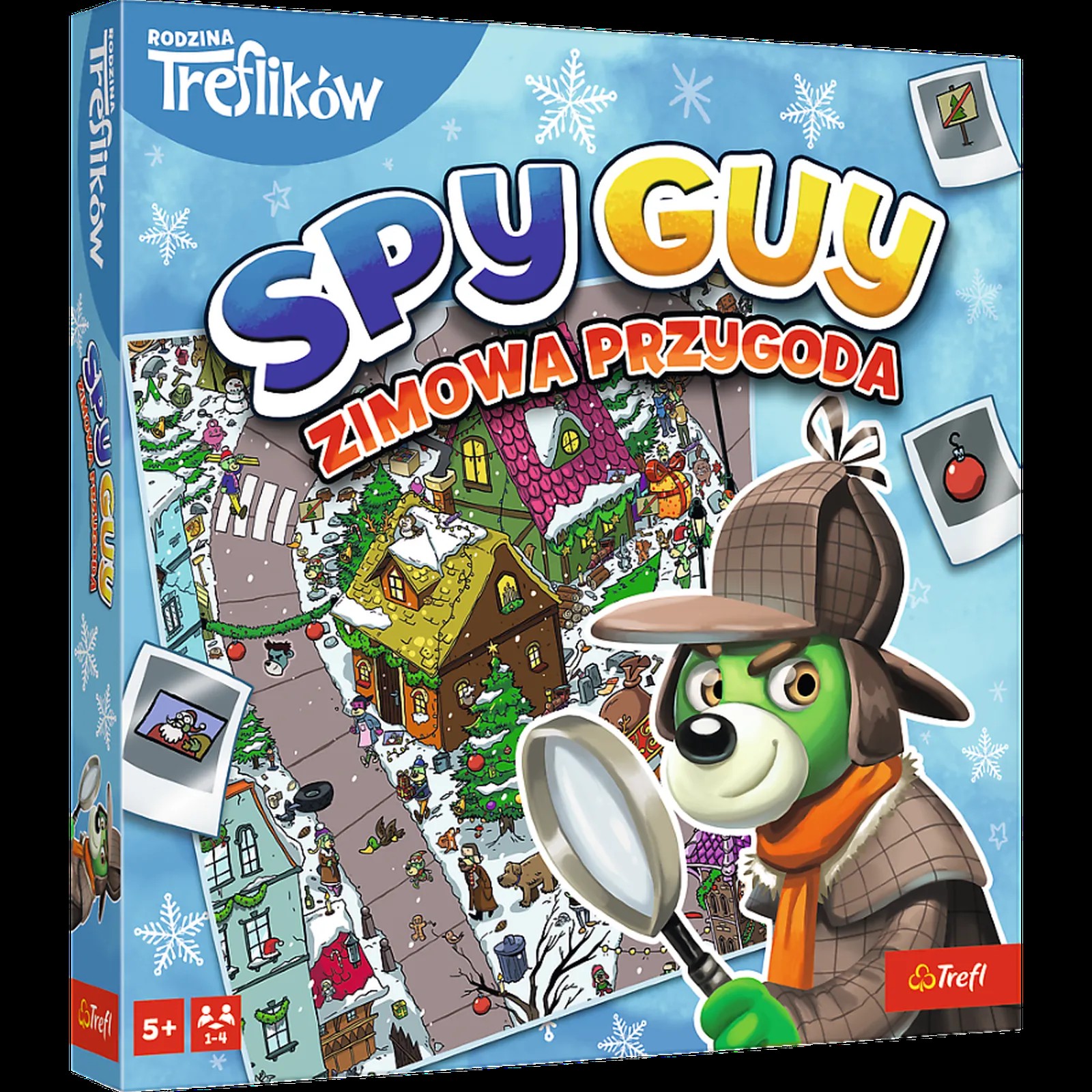 W Treflikowie nastała zima, jednak Spy Guy nadal ma ręce pełne roboty. Tym razem ma dużo mniej czasu, by złapać przebiegłego złoczyńcę. Spy Guy to gra kooperacyjna, w której liczy się spostrzegawczość i ścisła współpraca między graczami. Edycję zimową można rozegrać jako samodzielną grę, lecz można ją również połączyć z podstawową wersją, czyniąc grę jeszcze dłuższą i zróżnicowaną. Edycja zimowa to zupełnie nowa plansza zimowego Treflikowa, 28 nowych kart poszlak, nowe znaczniki poszlak - tym razem znalezione przedmioty będziecie zaznaczać kolorowymi bombkami!