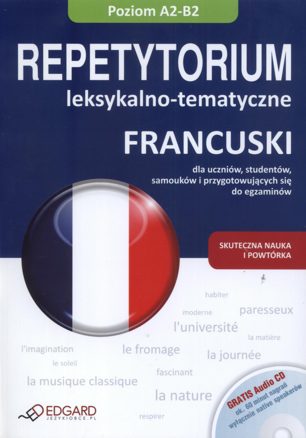 Francuski : konwersacje dla początkujących i średnio zaawansowanych / [autor Klaudyna Banaszek]. - Wydanie II. - Warszawa : Wydawnictwo Edgard, 2014. - 126 stron : ilustracje ; 19 cm + 2 płyty (CD Audio).