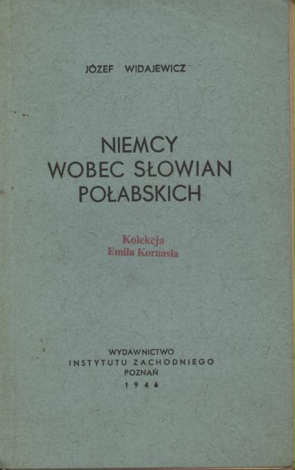 Niemcy wobec Słowian połabskich / Józef Widajewicz. - Poznań : Wydawnictwo Instytutu Zachodniego, 1946 (Poznań : Drukarnia św. Wojciecha pod Zarządem Państwowym). - 63 s. ; 20 cm.