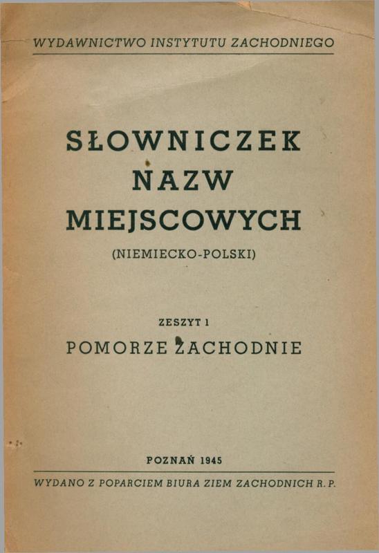 Osobne odbicie z: "Atlasu nazw geograficznych słowiańszczyzny zachodniej" w opracowaniu ks. Stanisława Kozierowskiego z. 1. Wyd. 2.