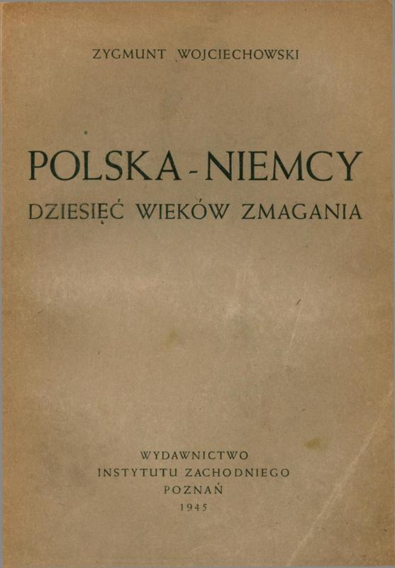 Polska - Niemcy : dziesięć wieków zmagania / Zygmunt Wojciechowski ; z 16 mapkami. - [Wydanie nowe zmienione]. - Poznań : Wydawnictwo Instytutu Zachodniego, 1945 (Poznań : Drukarnia Św. Wojciecha). - 267 stron : mapy ; 22 cm.