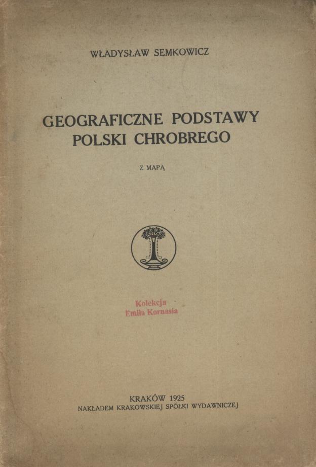Geograficzne podstawy Polski za Chrobrego : z mapą / Władysław Semkowicz. - Kraków : nakładem Krakowskiej Spółki Wydawniczej, 1925 (Lwów : Drukarnia Zakładu Nar. imienia Ossolińskich). - 59, [5] s., [1] k. tabl. : mapa ; 23 cm.